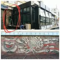 Ресторан на Печерске закрыл пристройкой мозаику. Активисты требуют ее снести