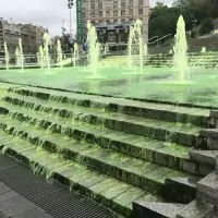 Фотохроника: как позеленели киевские фонтаны и речка Лыбедь