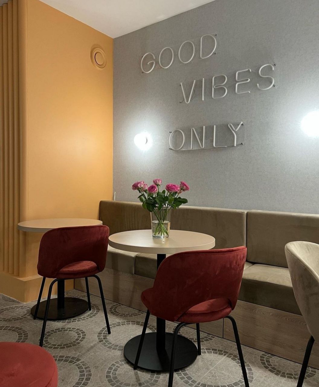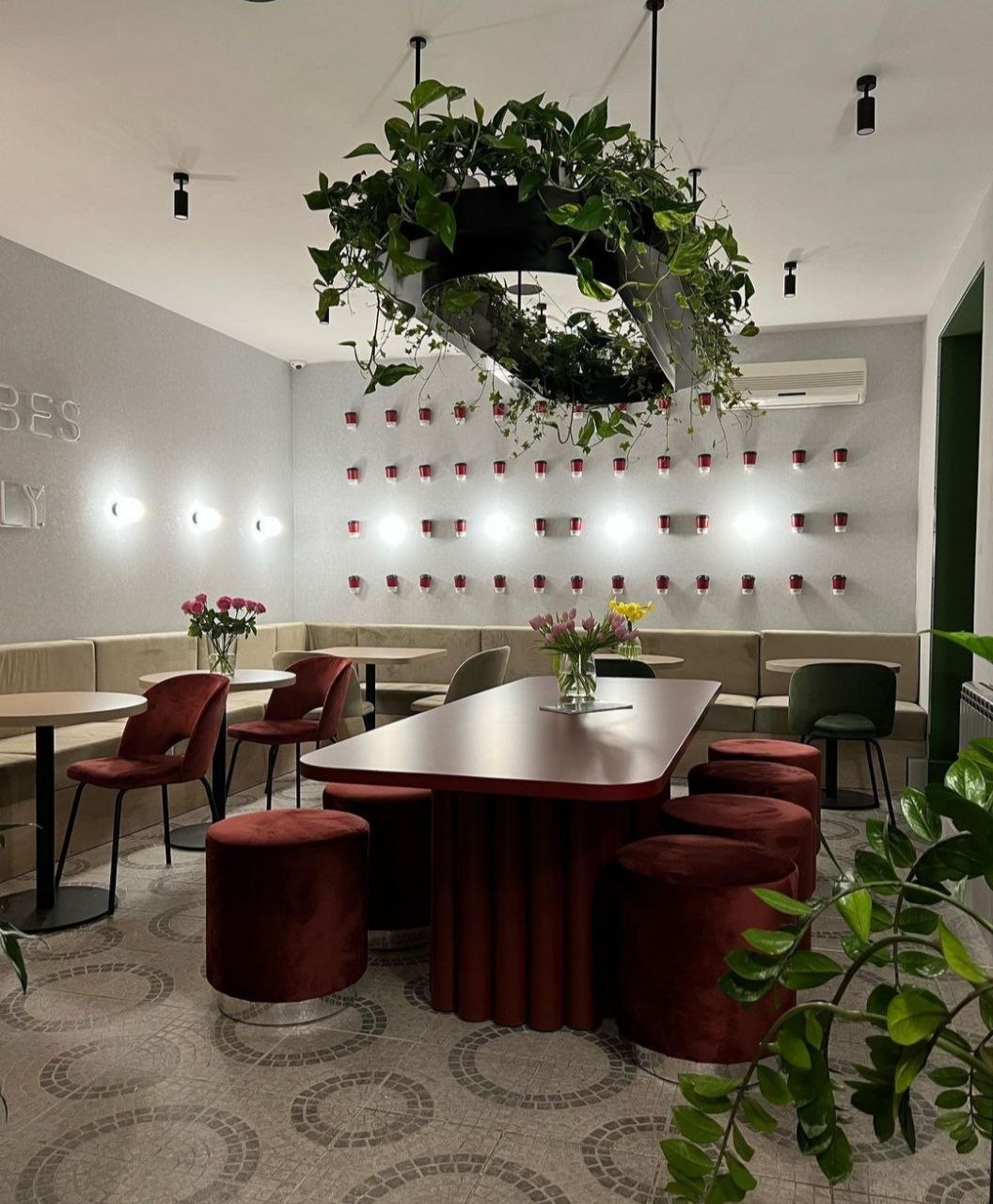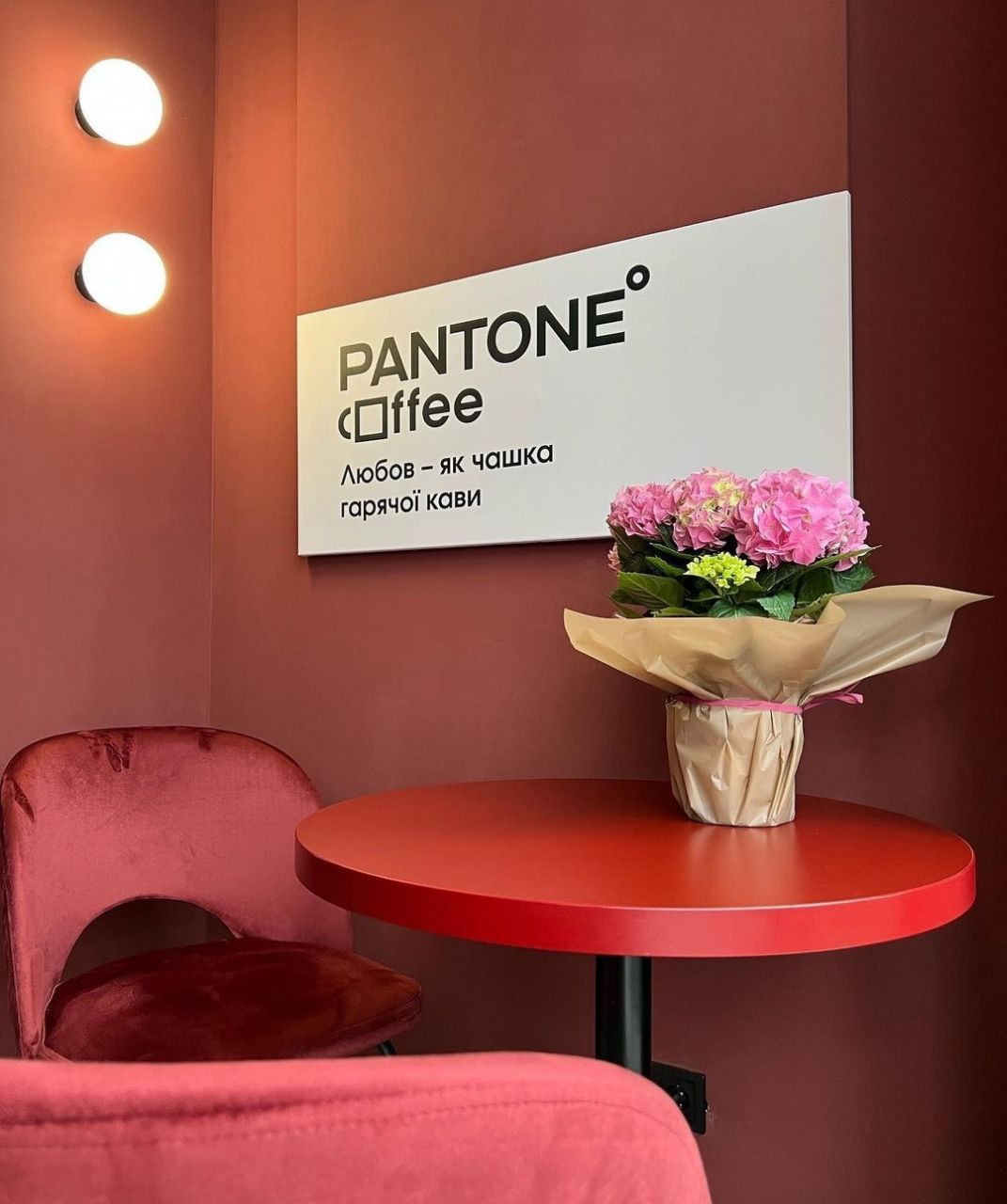 В помещении Pantone coffee объединили бар, места для работы за ноутбуком, стол для друзей и уголок для детей.