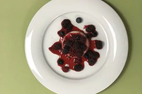 Достань панна-котту из форм и выложи десерт на тарелку. Полей ягодными кюли и наслаждайся.