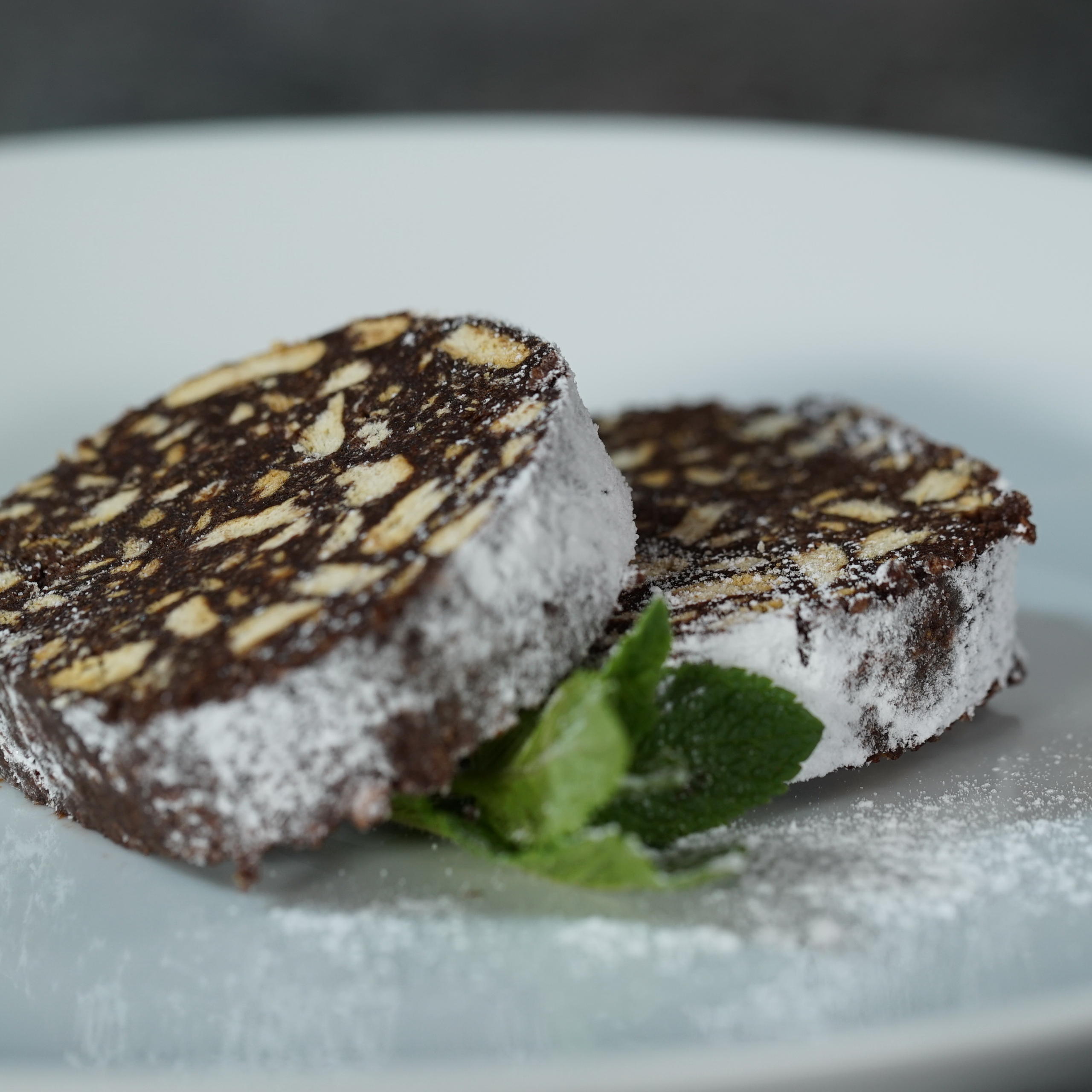 Шаг 3. Расстели на столе пищевую пленку и выложи массу в центр, а затем сформируй из нее колбаску и закрутите пленку по бокам, как шоколадную конфету. Положи в холодильник на два часа. Достань, укрась сахарной пудрой и подавай.