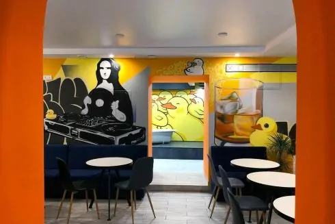 В заведении есть два зала, которые можно арендовать под тематические мероприятия, мастер-классы, корпоративы. Есть фотозона с ванной, наполненной резиновыми утками.