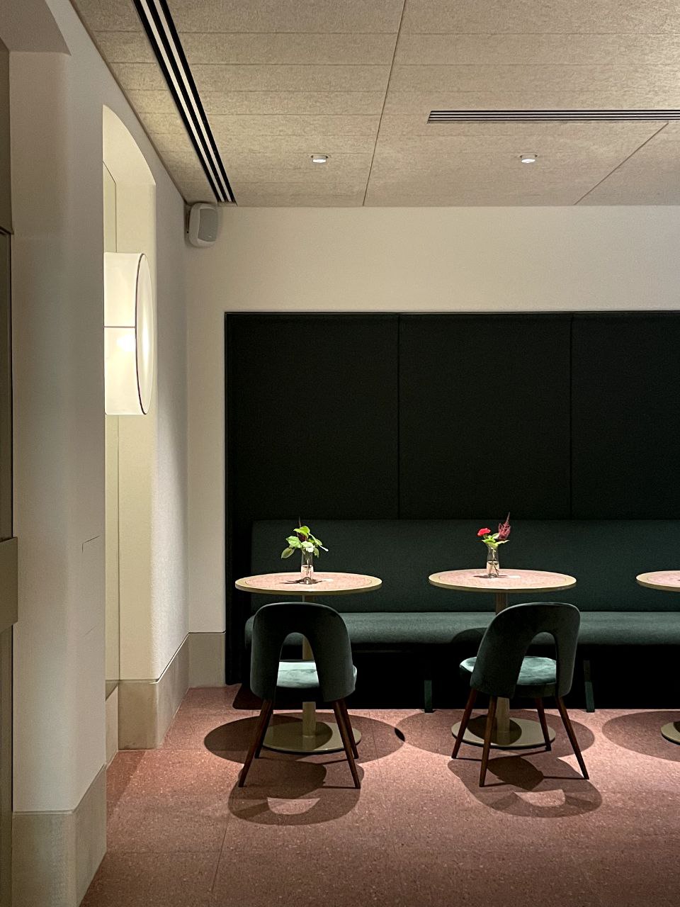 Над дизайном кафе работала студия Balbek Bureau. Заведение поделено на три зоны: Gallery (обеденный зал с открытым контактным баром), Terace (зеленое пространство со столами для небольших компаний) и Walnut Garden (летняя терраса с коммунальным столом).