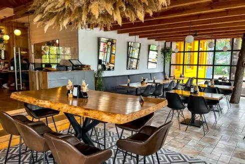 В интерьере заведения использовано много деревьев и зелени. В меню – блюда европейских кухонь – морепродукты, салаты, рыбные и мясные стейки.