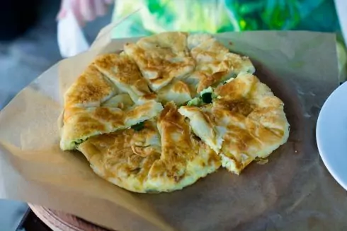Это пирог из дрожжевого теста с гречкой и картофелем, к начинке иногда добавляют жареный лук и шкварки. Очень часто блюдо готовят именно как ритуальное. Едят этот пирог с разнообразными мачанками (соусами).