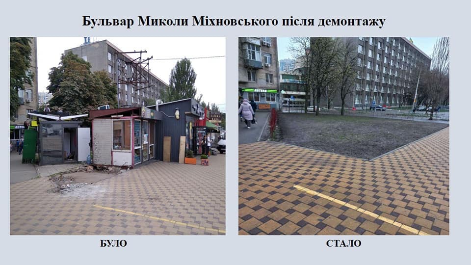 Также МАФы демонтировали на бульваре Михновского возле метро "Дружбы народов" и на перекрестке Вышгородской и Ивашкевича. На очереди Берестейский проспект, отмечают в Департаменте.
