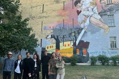 На здании в центре Киева, имеющем охранный статус, неизвестные начали рисовать мурал. Возмущенные жители вызвали полицию и остановили работы.