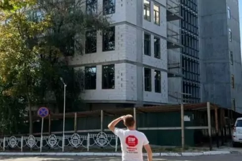 Однако здание, возводимое за металлическим ограждением, больше похоже на жилую многоэтажку.