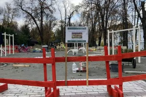 В парке Шевченко проводят капитальный ремонт детской площадки, поврежденной в результате массированной ракетной атаки 10 октября 2022 года.