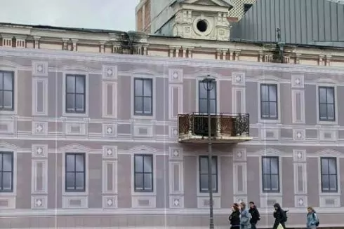 На улице Сагайдачного, 20/2, заменили баннер на памятнике архитектуры. Об этом сообщает активист Дмитрий Перов в соцсетях.