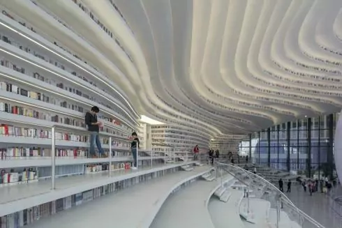 Самым популярным стал проект библиотеки в китайском городе Тяньцзинь. Его совместно разработали MVRDV и Tianjin Urban Planning and Design Institute. Это культурный центр площадью более 33 тыс. кв. м. Здесь могут поместиться около 1,2 млн книг, а здание было построено в рекордные сроки – всего за 3 года.