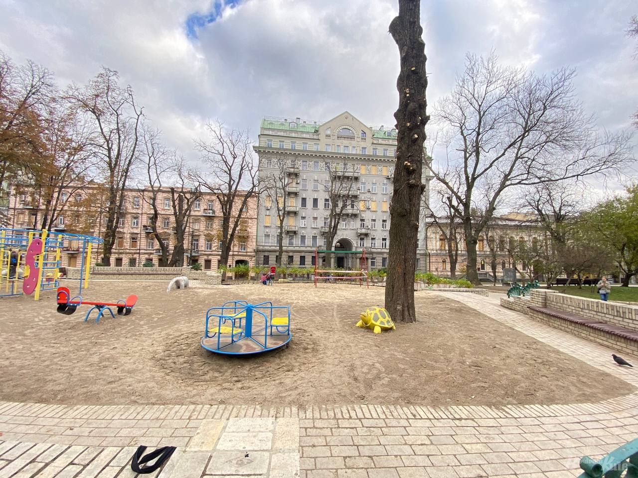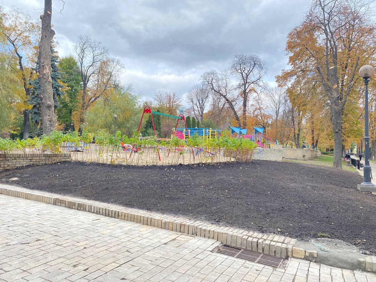 В парке Шевченко в Киеве продолжаются ремонтно-восстановительные работы на детской площадке, поврежденной ракетой 10 октября, сообщает КГГА.