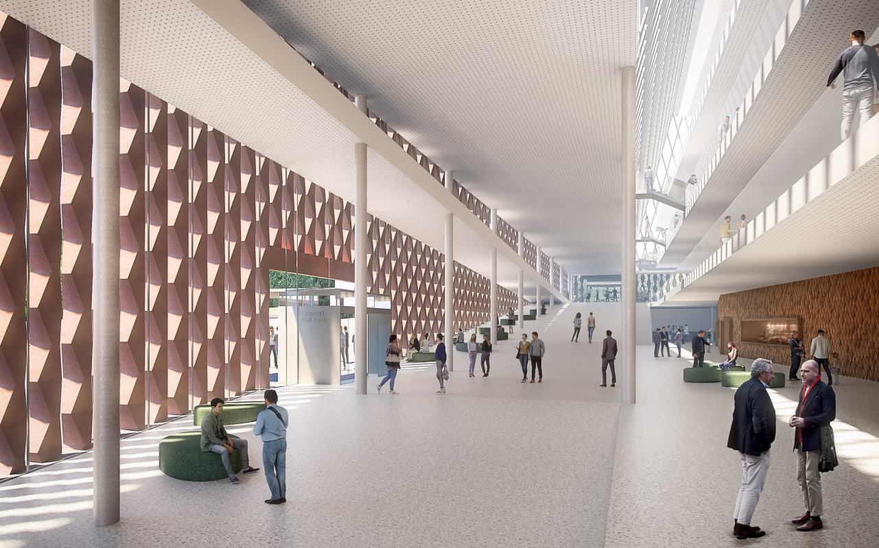 Стратегия базируется на максимальном взаимодействии парка и концертного зала, что предполагает его использование в качестве общественного центра семь дней в неделю, говорят в бюро.