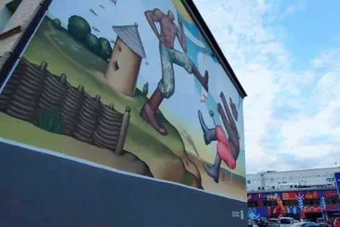 Размер стенописи - 16 на 10 метров. Художник работал над муралом 11 дней.