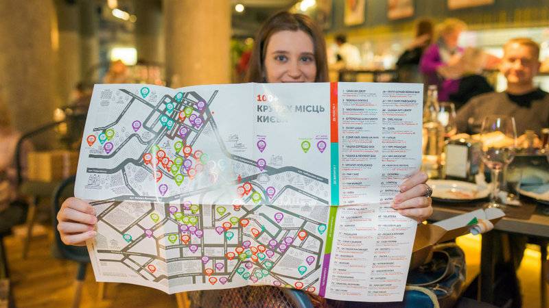 Основательница экскурсионного бюро "Секретный дворик« Юлия Бевзенко создала карту »100+ крутых мест Киева" с ресторанами, кофейнями, кондитерскими, шоурумами и другими знаковыми местами города. По словам Юлии, в подборке оказались заведения, при закрытии которых Киев многое потерял бы. Карта бумажная, формата А2, но легко складывается в А5.