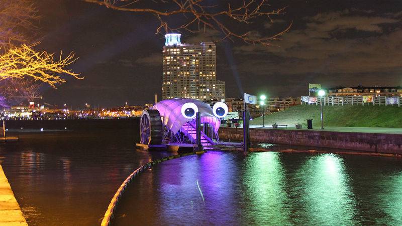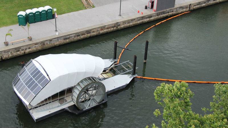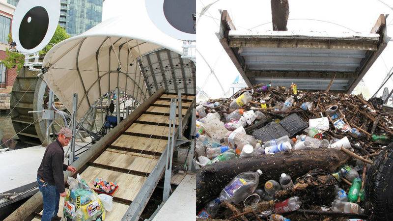 Идея: В 2014 году инженер и бывший моряк Джон Келлет создал Mr. Trash Wheel. Это конструкция в виде водяной мельницы, которая собирает все плывущие по ручью предметы. По конвейерной ленте, погруженной в воду, мусор попадает в специальный бункер, а оттуда на баржу и дальнейшую переработку — его сжигают и получают электроэнергию для нужд города.