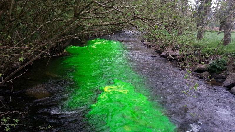 Для окраски использовали краситель под названием флуоресцеин. Он органический, полностью безопасен для растений и животных и часто используется учеными для отслеживания потоков воды.