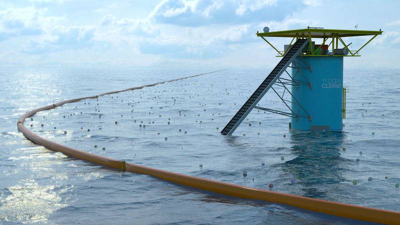 Идея: Обычно из-за течений и круговоротов воды мусор в океане сбивается в больше кучи. Голландский студент Боян Слэт изобрел станцию-платформу, которая также будет следовать по течению, подбирать эти кучи и использовать мусор как топливо для своей же работы. Излишки пластика будут вывозить на берег для переработки.