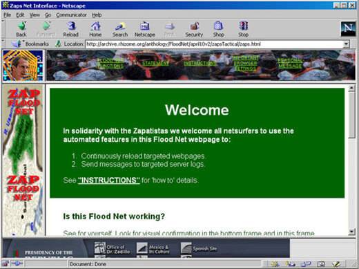 Сегодня DDоS-aтаки — эффективный инструмент хакеров. Оказывается, первую DDоS-aтаку провели как художественный акт ненасильственного общественного сопротивления. Авторами концепции были представители Electronic Disturbance Theater, которые хотели привлечь внимание общества к гражданской войне в Мексике.