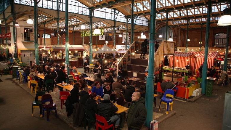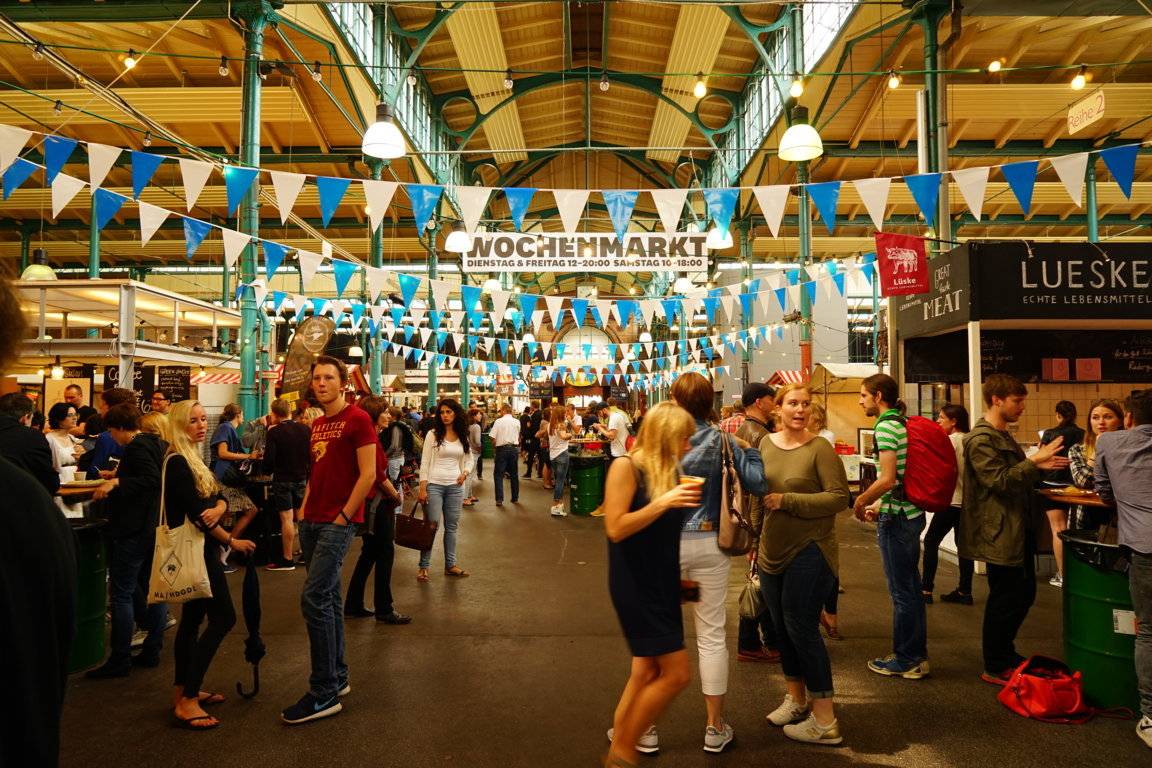 После долгих лет забвения рынок был полностью отреставрирован и открыт в октябре 2011 года. Тут предлагают свежие локальные продукты, блюда от торговцев и от берлинских рестораторов. Создатели маркета делают акцент на местных продуктах — они поддерживают небольшие независимые фермы и местное производство. Тут уважают природу и полный цикл сельского хозяйства — например, зимой на прилавках точно не будет клубники. Помимо регулярно работающего продуктового рынка, там проходит Street Food Market. Каждый четверг в Markthalle можно попробовать блюда кухонь почти всех народов мира. Раз в месяц, в воскресенье, здесь проходит ярмарка сладостей — Naschmarkt. Продают пирожные, мармелады, торты, всевозможные сорта меда, шоколад во всех вариациях.Рынок открыли в 1915 году. Тогда он был единственным рынком, построенным из металлических ажурных конструкций. В 2009 новые владельцы провели реконструкцию — старые прилавки переоборудовали в тапас-бары. Более 30 поставщиков продают здесь свежеприготовленные тапасы, ветчину, оливки, хлеб и булочки. Прямо на рынке можно перекусить — съесть закуски “тапас” и выпить пиво, вино или шампанское. Рынок открылся еще в 1882 году, и с тех пор его несколько раз реконструировали. В последний раз он был отремонтирован в 2014 году благодаря проекту журнала TimeOut. В здании, которое занимает 10 тысяч квадратных метров, сейчас расположены 24 ресторана и 8 баров. Например, здесь есть несколько рыбных заведений, шоколадный и винный бутики, магазин консервов и ларьки с мороженым. Также маркет работает как обычный рынок — здесь можно увидеть торговцев мясом и рыбой, фруктами и цветами.