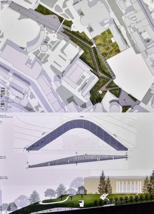«Проект начинается с Майдана. К нему можно попасть по мощению Майдана, то есть это единое плавно перетекающее пространство. В одном из склонов есть ниша, в которой размещены 107 пилястр, каждая из которых посвящена одному из героев Небесной сотни», – отметил Хоссбах.