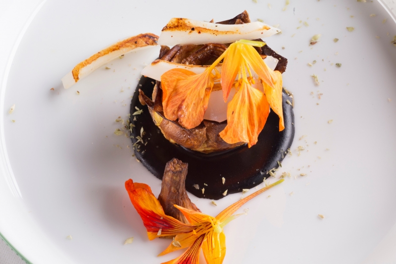 Самое известное блюдо жаровни «курица в полутрауре» — это целая курица с кусочками черного трюфеля, наслоенного между кожей и мясом. При этом в меню добавили несколько новаторских штрихов: фрикасе из ушка, фундук, топинамбур, гречневую галету с устрицами и икрой.«Ален Дюкасс — настоящая индивидуальность. Так какого черта мы ожидаем, что он будет тратить время и деньги на глупую татуировку, как почти любой другой модный шеф-повар в мире?», — говорят жюри.
