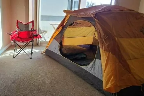 Обычную туристическую палатку можно поставить посреди комнаты и таким образом греться.