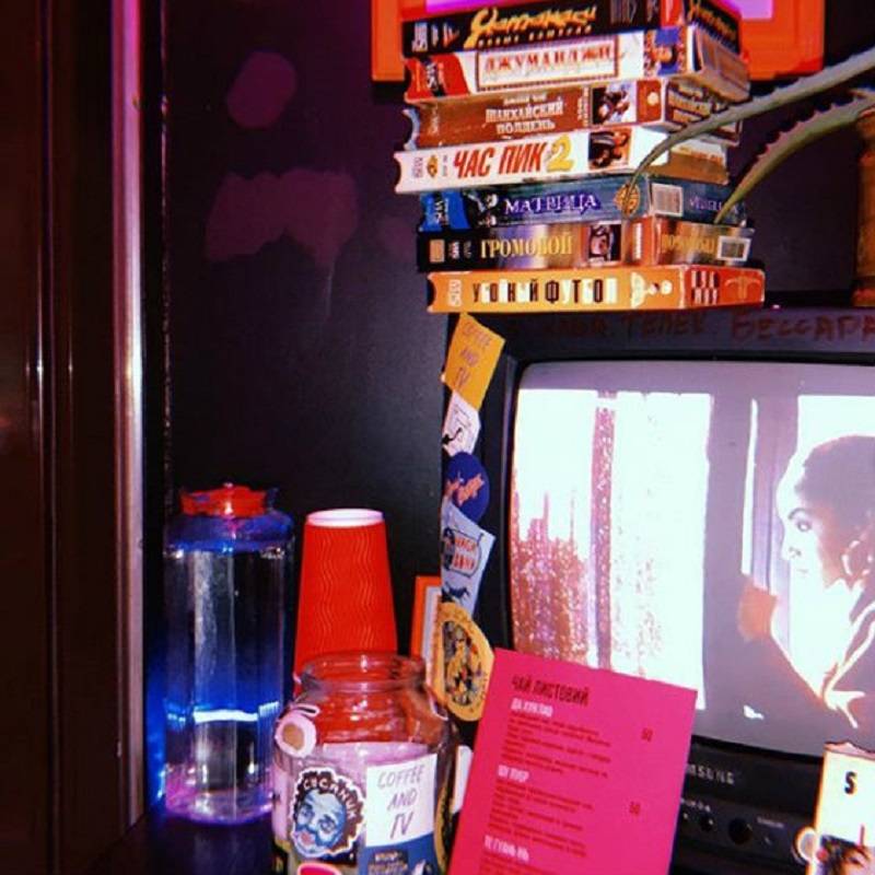 Интерьер оформлен в стиле 90-х. Там есть винтажный телевизор с видеоиграми и кассетами, а центральным элементом является копия «Джоконды». Кроме того, основатели подбирают плейлист, который соответствует винтажной атмосфере, а по телевизору транслируют мультики и фильмы из 90-х. В частности, они говорят, что на концепцию их вдохновила песня группы Blur «Сoffee and TV».