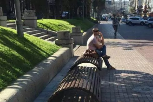 Вдоль тротуара на Крещатике установили первые две лавочки.