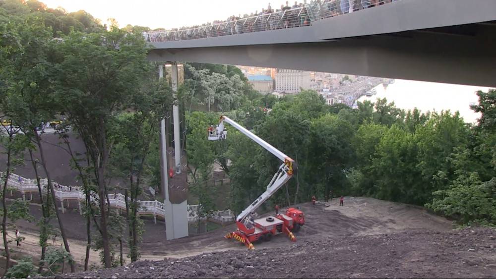 Повреждения обещают устранить за сутки.Напомним, пешеходно-велосипедный мост над Владимирской горкой открыли 25 мая, ко дню Киева. Он объединяет между собой Мариинский и Хрещатый парки. Проект обошелся городу порядка 400 миллионов гривен (а сам мост – 275 млн).