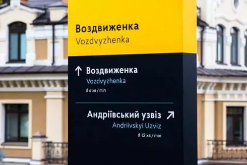 “Агенти змін” разработали новые навигационные пилоны для центральной части Киева. Первые уже установили рядом с лестницей на Пейзажку.