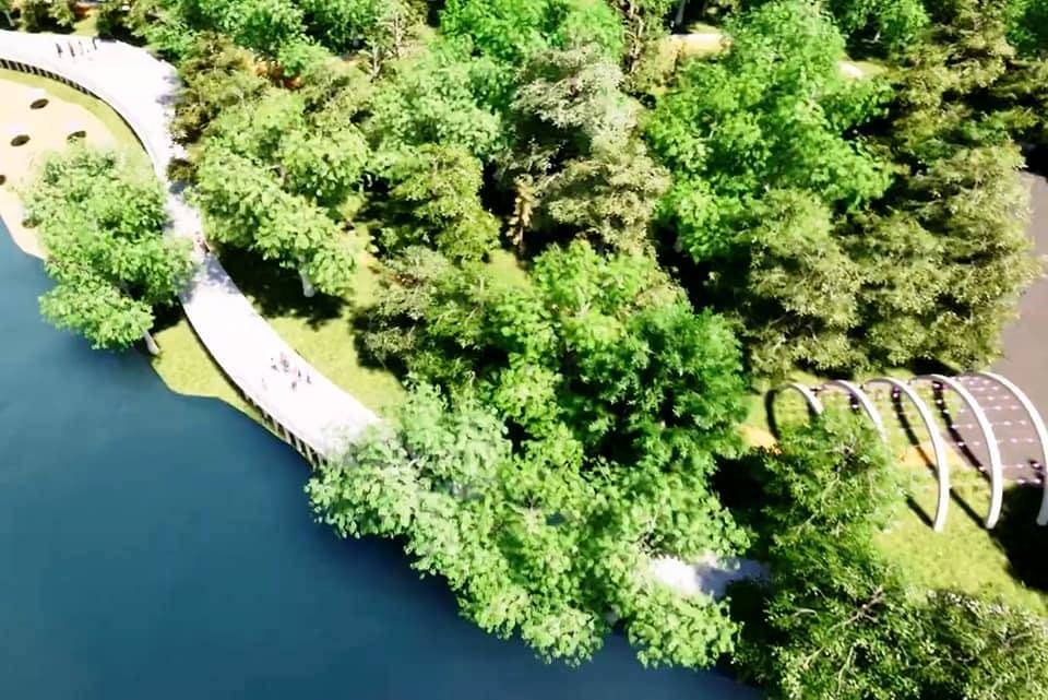 В зеленой зоне парка и на воде планируется создание пространств для отдыха. В частности, беседок, зон солярия и открытого амфитеатра с причалом. Также там будут широкие прогулочные зоны с аллеями и велосипедные дорожки.В рамках строительства первой очереди будет проведена вертикальная планировка территории, построены въезд и автостоянка, заложены инженерные сети под общественный туалет и дом садовника. Работы продолжаться и в 2021 году.