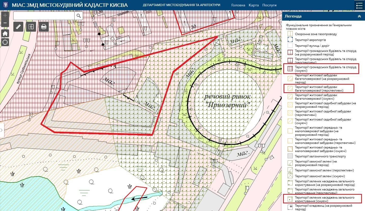 Согласно ГУО, на участке площадью 0,46 га планируется строительство общественно-жилого комплекса высотностью более 20 этажей. Часть этого участка находится в пределах прибрежно-защитной полосы озера Серебряный Кол.