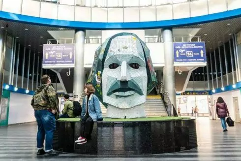На Южном вокзале в Киеве установили гигантскую голову писателя Николая Гоголя — символ фестиваля Гогольfest, сообщают организаторы.