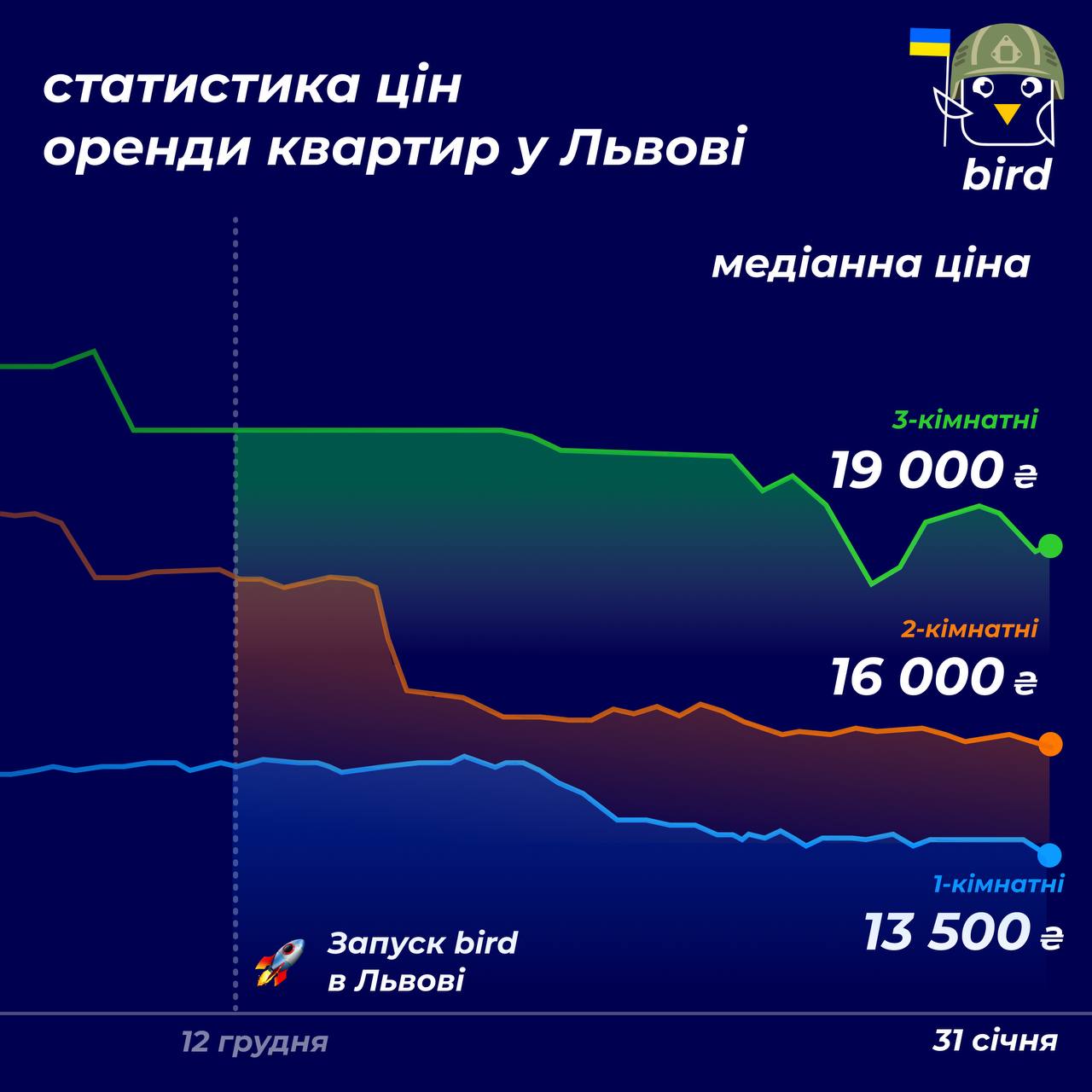 Во Львове в январе 2023 года медианные цены выглядят так: