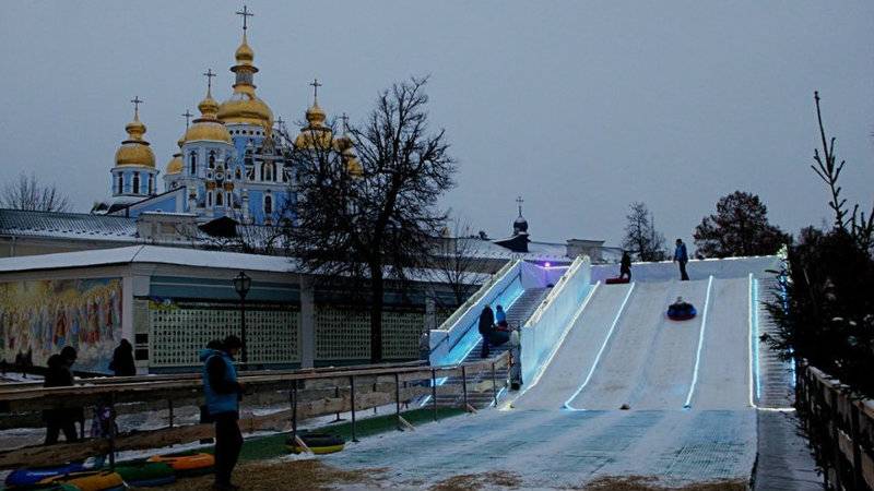 А еще на Крещатике залили каток и установили карусели. Здесь также работает елочный базар.