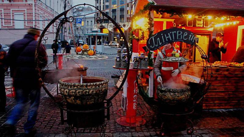 Напротив открывшегося недавно ЦУМа уже во всю работает новогодне-рождественский ярмарок. Деревянные палатки с едой и подарками установили на тротуаре Крещатика.