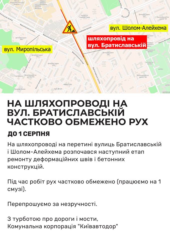 На Виноградаре случился обвал на проезжей части, а на Братиславской ограничат движение до 1 августа.