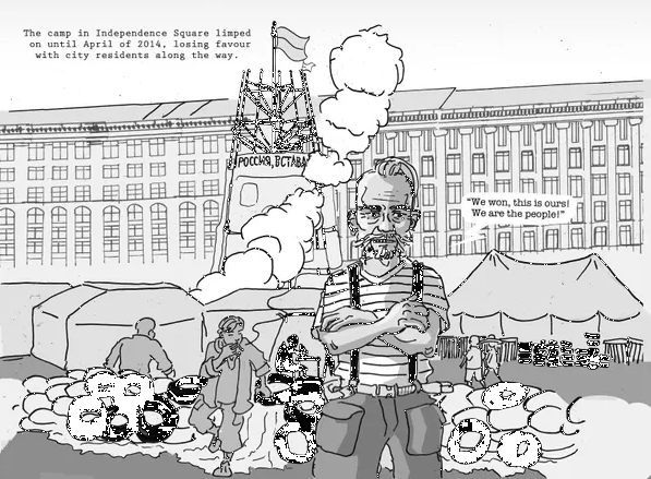 Комикс вышел в разделе The Guardian Cities и состоит из четырех частей. «В конце 2013 года столица Украины взбунтовалась против правительства — протестующие использовали саму ткань города в качестве своего оружия», — так описывает The Guardian комикс Павлоцкого.Первая часть «Euromaidan: The City as a Weapon» рассказывает о событиях, предшествовавших Майдану, а также об избиении студентов силовиками в ночь на 1 декабря 2013 года. Во второй части «Euromaidan: The Camp in the City» рассказывается о сооружении палаточного городка на Майдане и противостоянии активистов и беркутовцев.Третья и четвертая части комикса — «Euromaidan: The War Zone» и «Euromaidan: The Tent Village» — рассказывают о дальнейших событиях Революции достоинства и начале войны на Донбассе.Алекс Павлоцкий — антрополог и художник из Мельбурна, он отмеченный множеством наград. Павлоцкий был во время событий на Майдане в 2013 году, иллюстратор положил в основу своего комикса личные наблюдения.