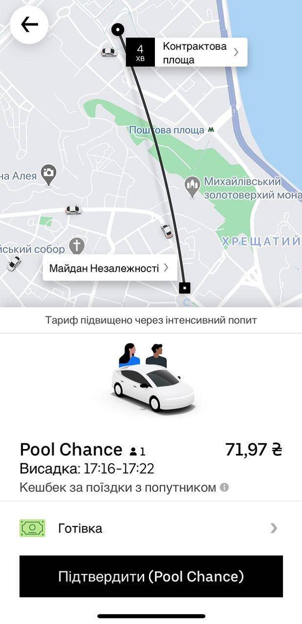 Сервис по заказу такси Uber запустил услугу совместных поездок Pool Chance. Киев стал одним из первых городов в мире, где компания тестирует новую функцию, сообщает Interfax.ua.