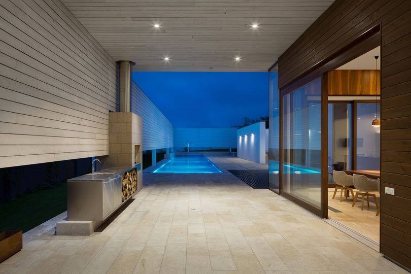 Плоский дом окружают открытые террасы, так как здание находится на возвышенности и из окон открываются захватывающие виды на окрестности.