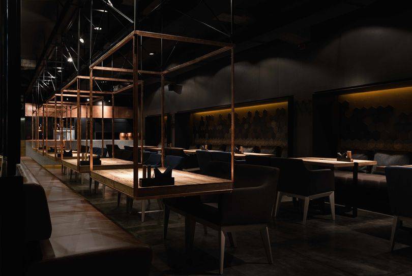 Ресторан «Sazha» в Сумах с бетонными стенами и деревянной мебелью – идеальное место для того, чтобы съесть сочный стейк. А ярких красок добавляют рентгеновские снимки, превращенные в эффектную инсталляцию.