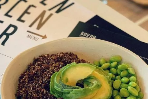 В меню овощные и фруктовые боулы, а также оригинальные супы. Например, томатно-кокосовый с морепродуктами или нутово-томатный. Кроме того, можно заказать тост из авокадо с лососем и яйцом пашот или сладко-соленый чиа-пудинг, приготовленный на кокосовом молоке. Из напитков есть кофе, фреши и смузи.