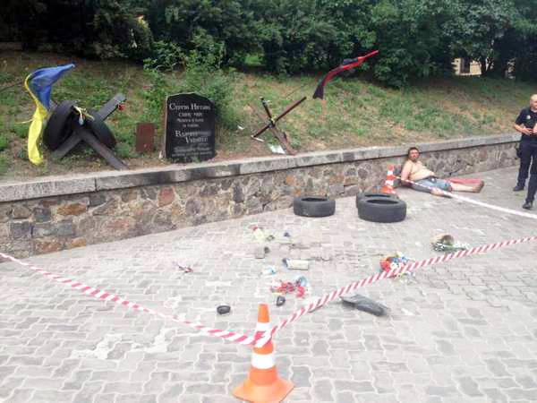 Хулиганы, побывавшие ночью возле мемориала, повалили украинский флаг, разбросали цветы и сложенные у гранитного обелиска шины.