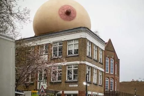 Производители тренажера Кегеля и молокоотсоса Elvie установили на крышах домов в Лондоне 5 надувных скульптур в форме женской груди.