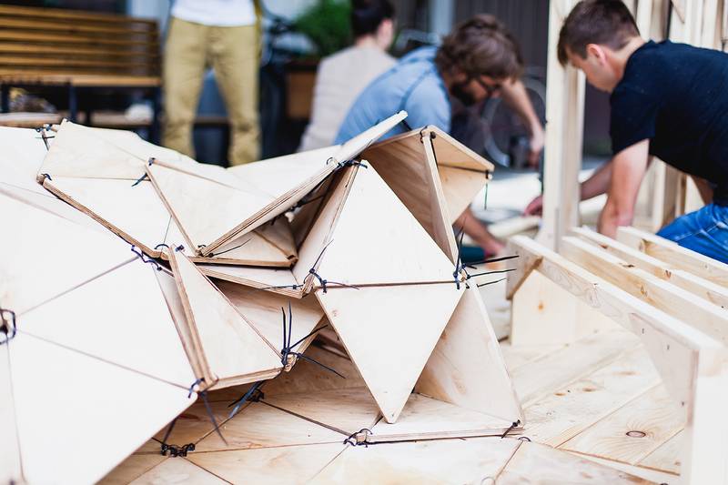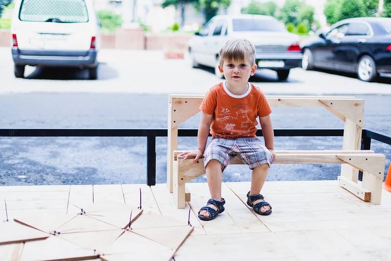 "Честно говоря, мы не ожидали такого ажиотажа. Специально решили сделать лавочки в виде рельефа из треугольников, чтоб каждый мог присоединиться к работе. Сначала нарезали около 500 элементов из фанеры, а потом люди их дружно собирали.