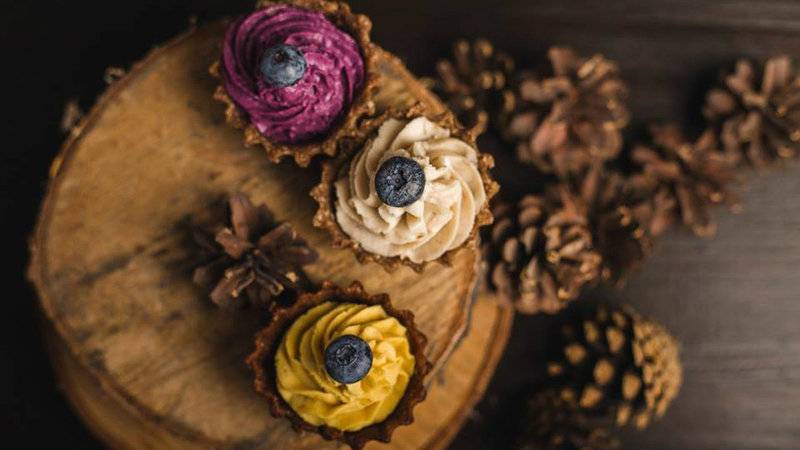 В тройке лидеров – малиновый кейк из кешью, ягодный торт под клубнично-смородиновым желе на агар-агаре и ягодный торт под бананово-шоколадным топингом. Но ассортимент широкий, могут приготовить также кексы или конфеты.