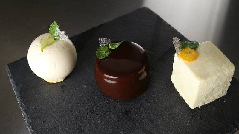 Всего в ассортименте шесть десертов – есть также шоколадный торт с апельсиновой прослойкой, fragole (клубничный мусс с шоколадным ганашем), манговый мусс с грушевым конфи, ванильно-шоколадный мусс с малиновым конфи. Все – без сахара и муки. Под заказ приготовят и целый торт.