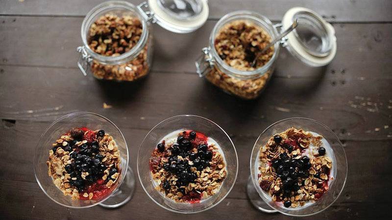 И снова овсянка, сухофрукты и орехи. Вместо сахара – стевия, также обязательный ингредиент в каждой граноле – корица. Заказать можно пять видов гранолы (инжир-грецкий орех, клюква-грецкий орех, дыня-семечки, манго-кешью, кокос-грецкий орех) и два вида бискотти из овсяных отрубей.