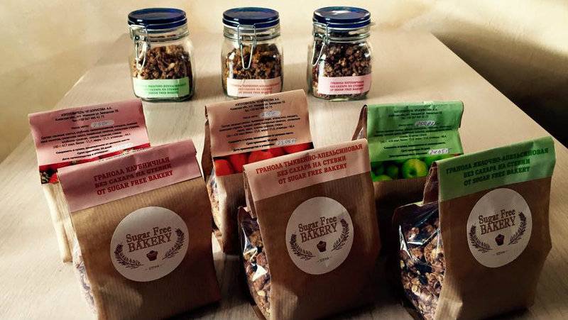 Очевидно, здесь все готовят без сахара: гранолу, эклеры, кексы, печенье. Одной заменой сахара на стевию не ограничиваются. Например, эклеры делают из муки грубого помола и с меньшей долей масла. Могут приготовить также и торты на стевии.
